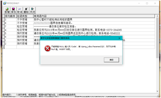 可能原因:排列順序號不能重復(fù),短語類型和常用語內(nèi)容不能為空。