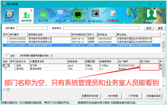 預約受理的器具沒有科室信息(科室收不到企業送檢的器具)(可自行對照)
