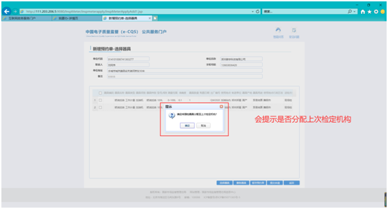 解決方案:修改行政區劃正確之后,再次提交預約單的時候,會提示是否分配至上此檢定機構,這個時候我們要選擇否,才可以分配到當地檢測中心;告知企業正式平臺地址,讓企業注冊之后再次進行申報。(http://psp.e-cqs.cn/egov/shIndex.html)