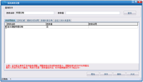 解決辦法:在【系統(tǒng)設置中心】中的【系統(tǒng)設置參數(shù)設置】中的【準許調整受理日期】的參數(shù)值調整為“是”
