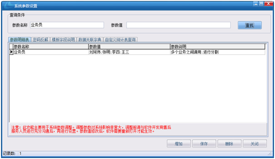 解決辦法:在【系統(tǒng)設(shè)置中心】中的【系統(tǒng)設(shè)置參數(shù)設(shè)置】中的【業(yè)務(wù)員】的參數(shù)值后加上新的姓名,用分號隔開