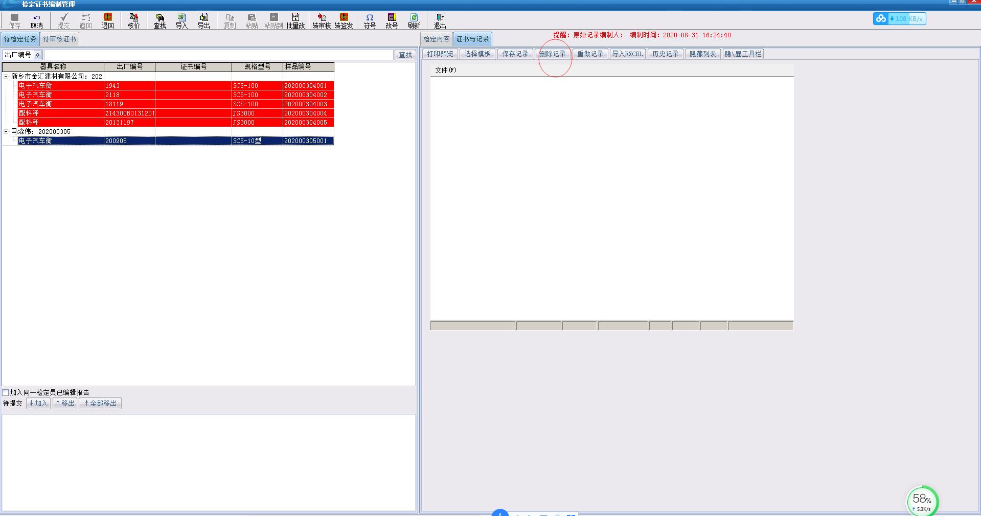 將提示錯誤的器具信息,打回到證書編制,在證書編制界面重新編制證書