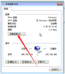 然后關閉詳細信息,點擊屬性,選擇internet協議版本4的雙擊進去,選擇“使用下邊的IP地址”,然后將詳細信息內的信息填寫進去