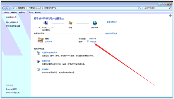 打開網絡共享中心,選擇本地連接